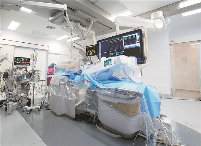 厦心医院导管室内,机器人精确完成二尖瓣修复手术。(本组图/医院提供)