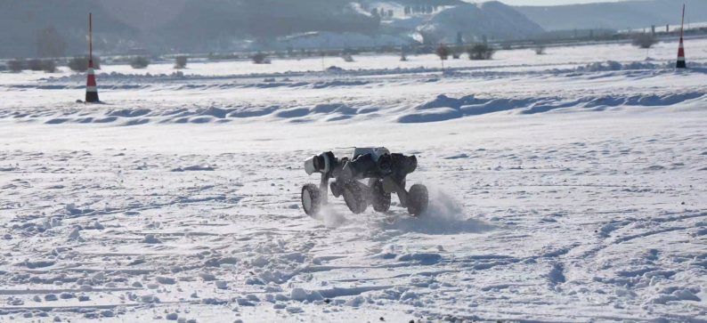 山猫M20机器狗在雪地漂移
