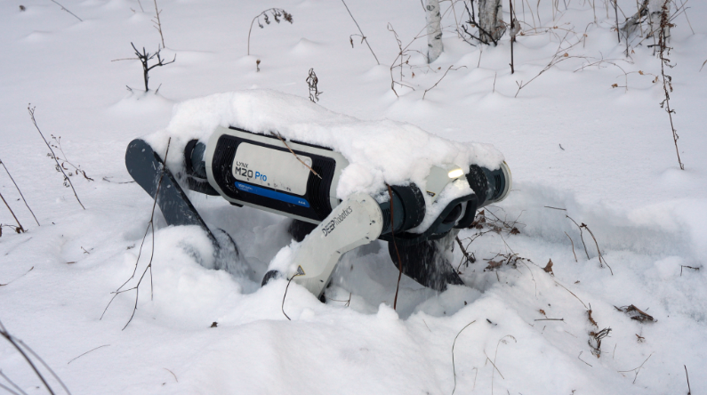 山猫M20机器狗在雪地行走