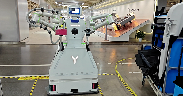 王岗介绍:“东风岚图项目构建的是一个可满足工业现场作业的专业的轮式双臂协作机器人,基于双臂协同构建未来的汽车柔性产线。”