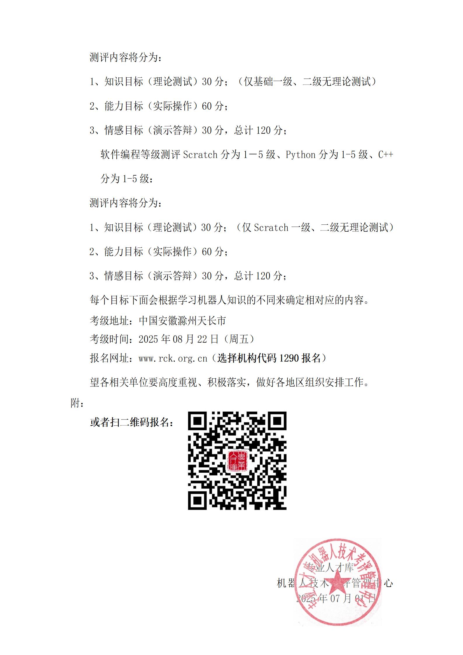 (1290)安徽滁州站——机器人技术等级测评(08月22日统考入口)