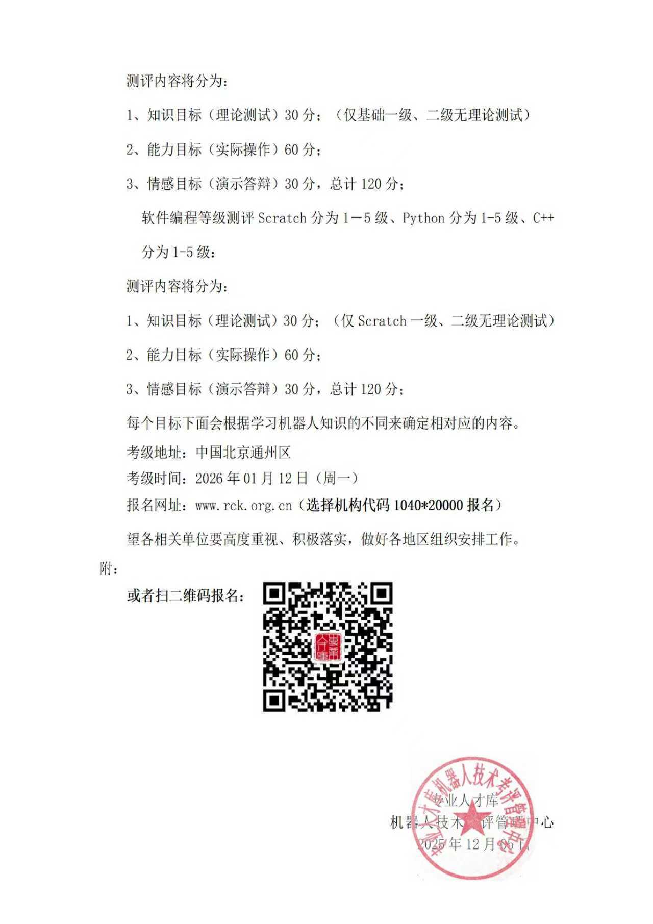 (1040-20000)北京通州站——机器人技术等级测评(2026年01月12日)