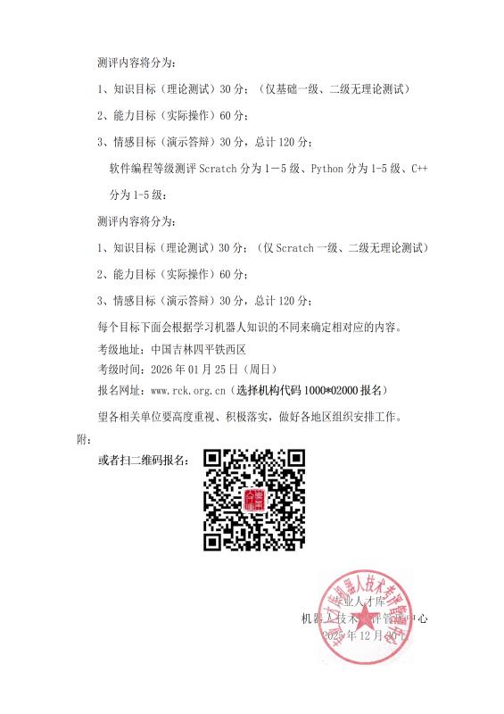 (1040-20000)北京通州站——机器人技术等级测评(2026年01月12日)