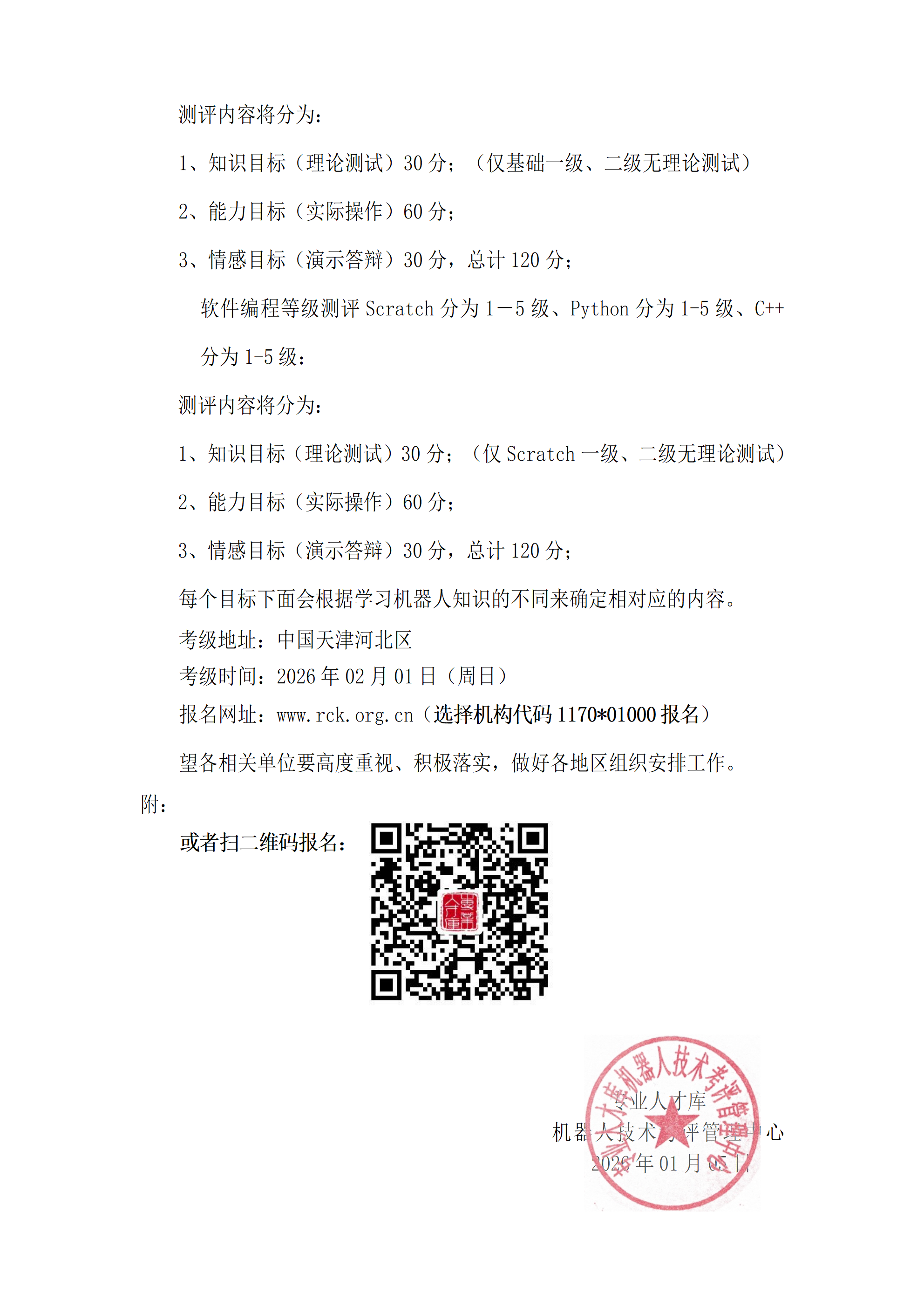 (1170-01000)天津站——机器人技术等级测评(2026年02月01日)