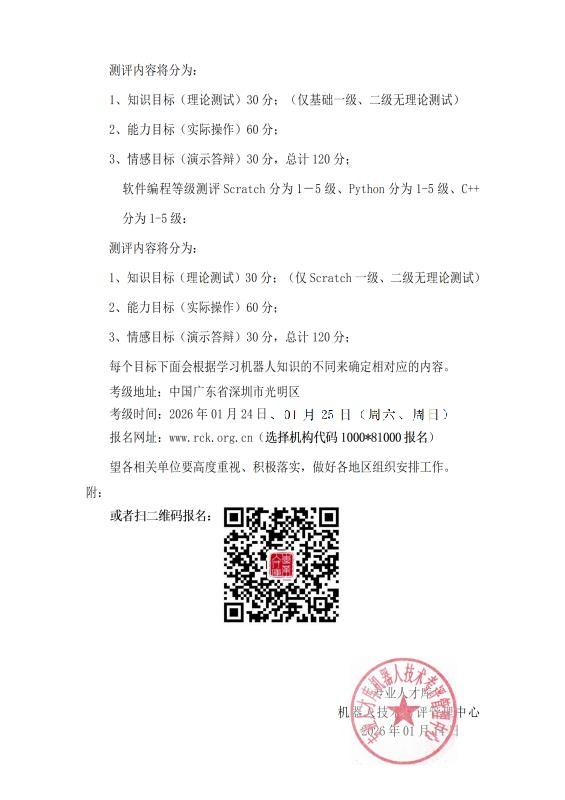 (1040-20000)北京通州站——机器人技术等级测评(2026年01月12日)