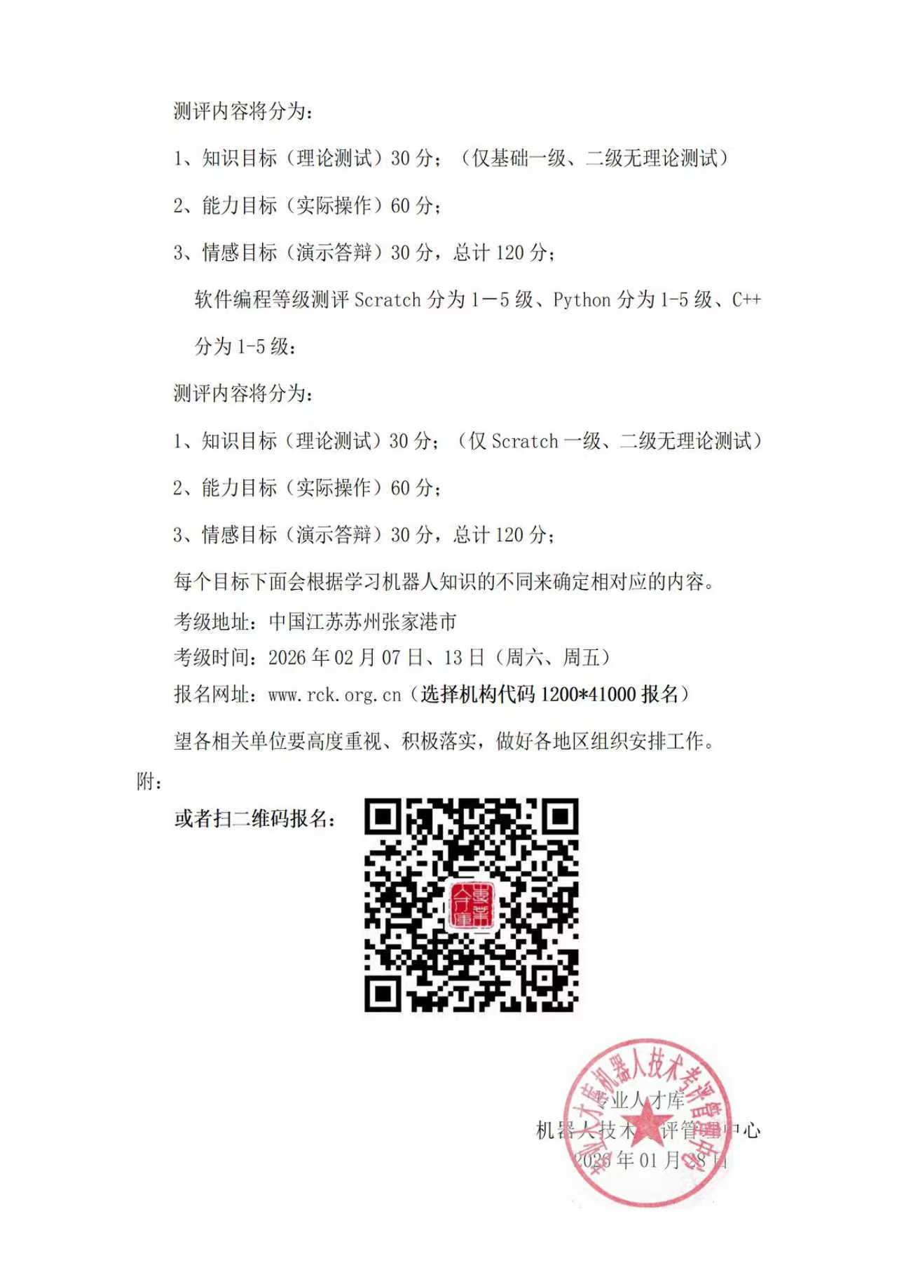 (1200-41000)江苏苏州站——机器人技术等级测评(02月07日、02月13日)