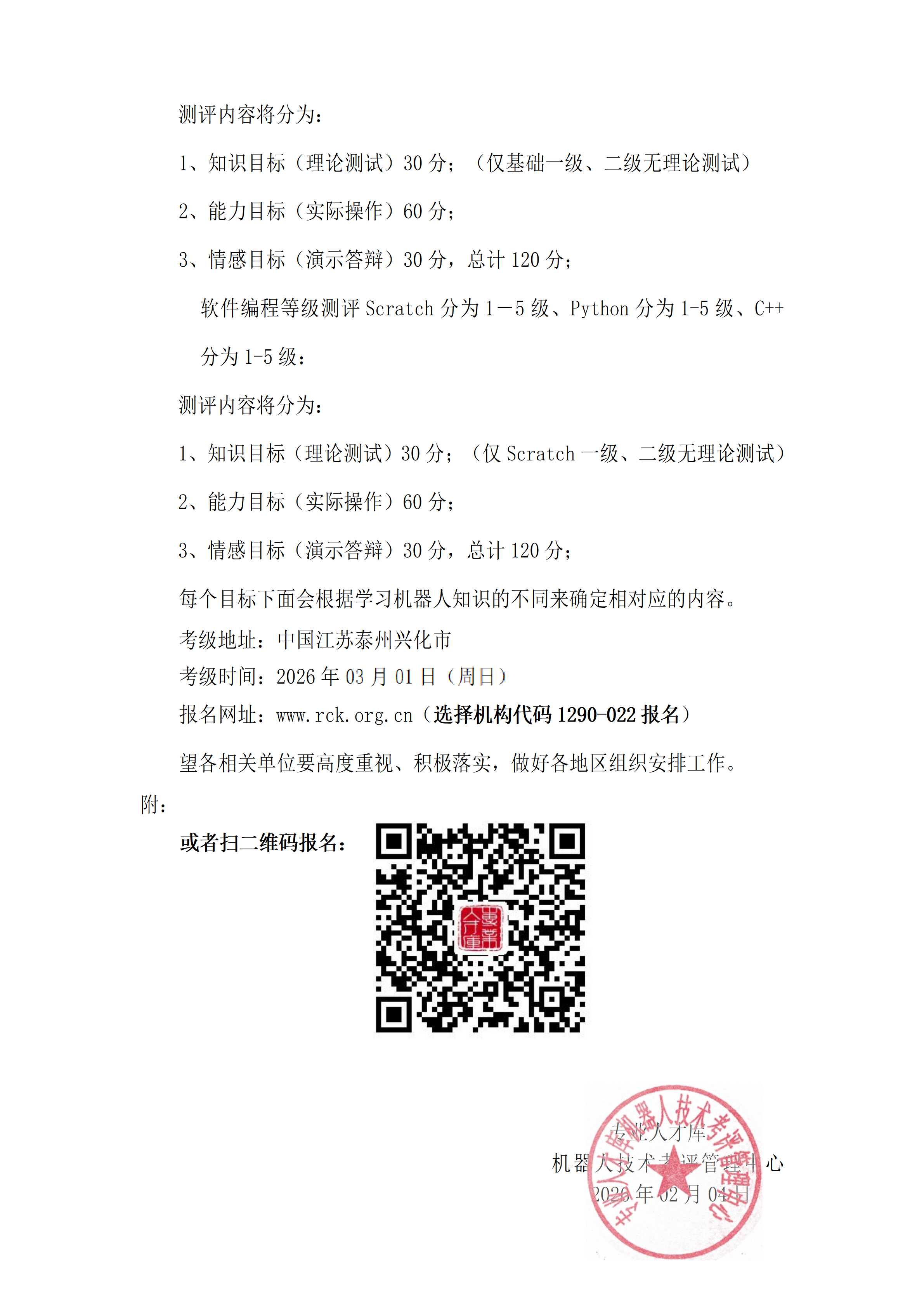 (1290)江苏太仓站——机器人技术等级测评(2026年02月05日会考入口)